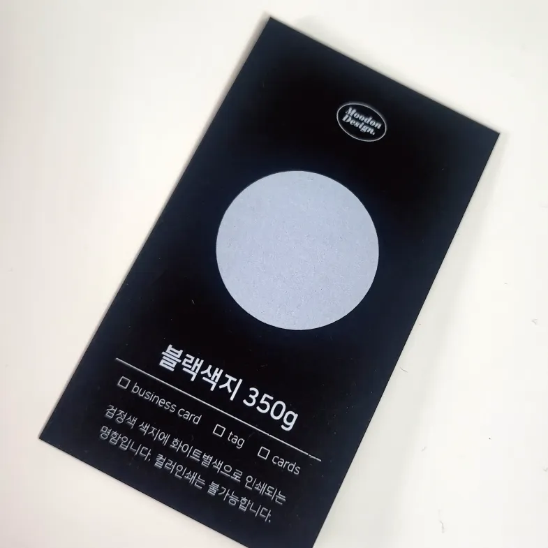 도톰하면서 매트한 블랙 색지에 화이트로 인쇄 가능 (종이질감