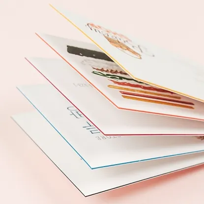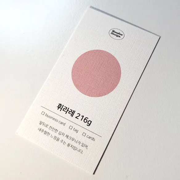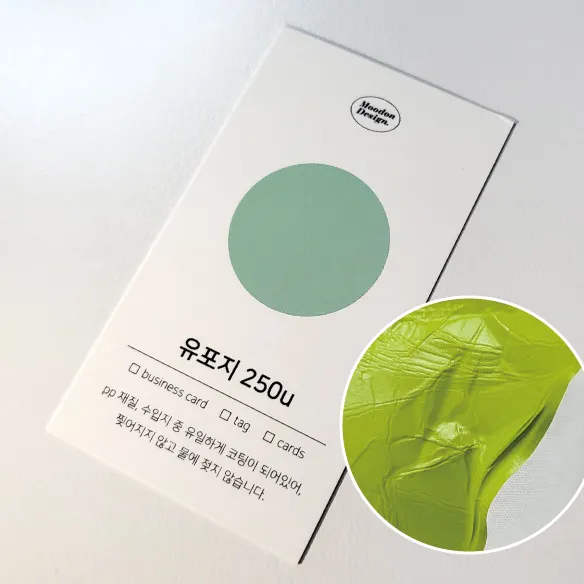 측면에 박가공이 들어가면서 여러장을 겹치면 고급스러운 용지 (프리미엄지)