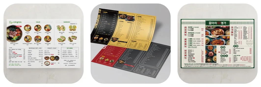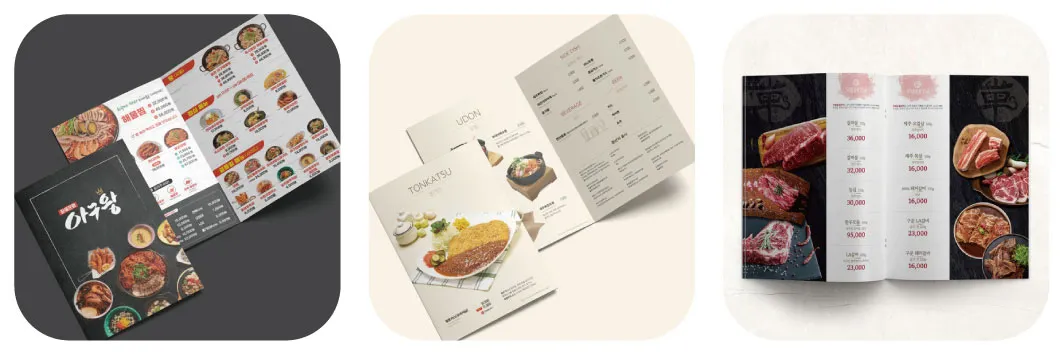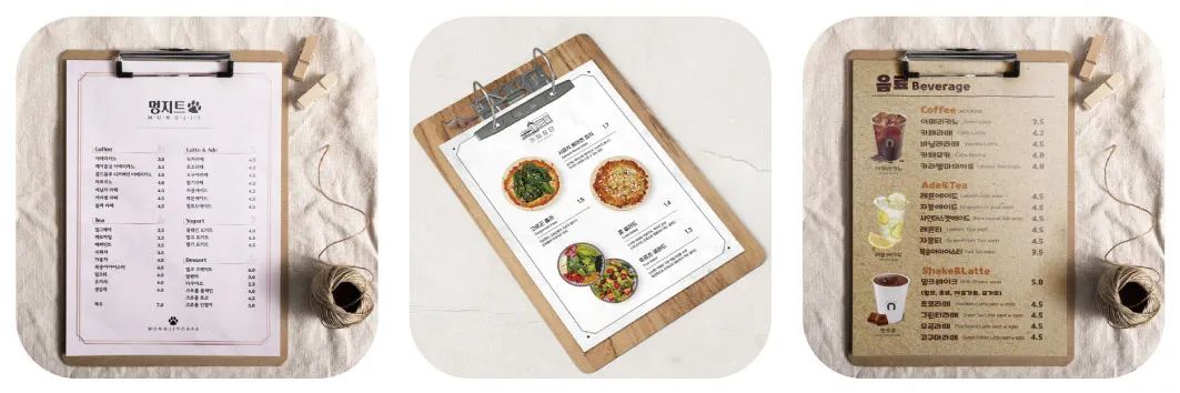 테이블메뉴판 형태 (디자인비 평균 1p당 5만원~)