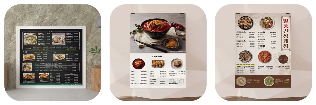 벽걸이/포스터 형태 (디자인비 평균 1p당 5만원/10만원)