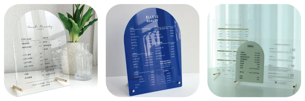 아크릴 투명 메뉴판 형태 (디자인비 평균 1p당 3만5천원)